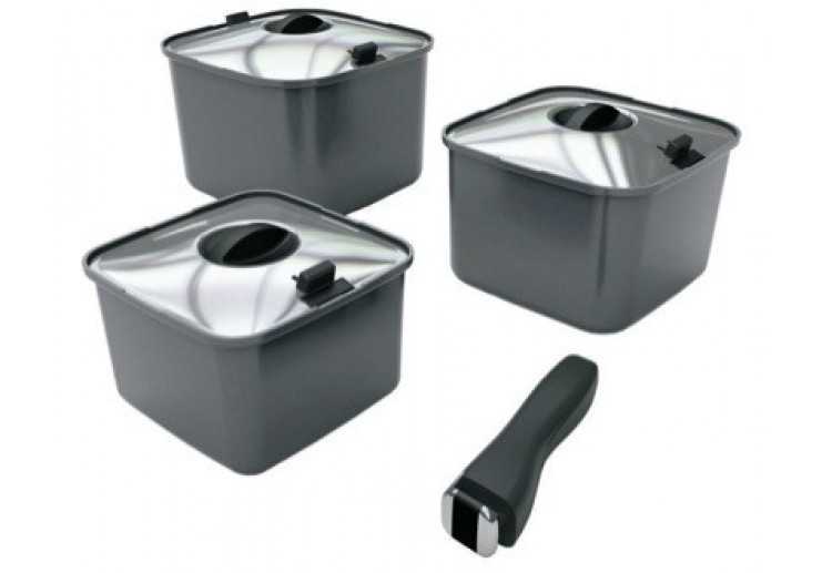 - Stackable design of pots and pans that neatly store within each other, and in your small cabinets.